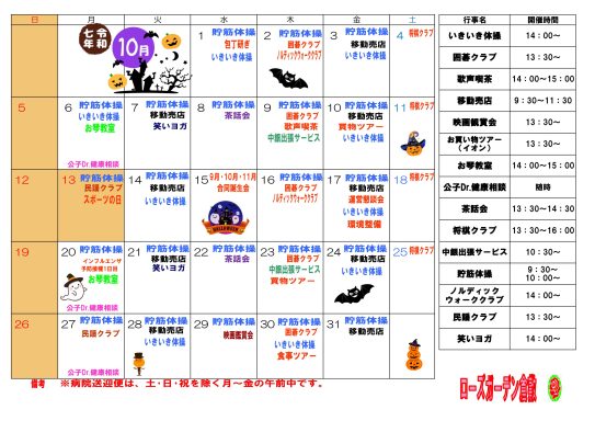 ローズガーデン倉敷日記 TOPページ > ローズガーデン倉敷日記 > 月間予定表 > 10月 2025.09.22 (Mon)|月間予定表 新着情報 10月 ダウンロードPDFファイル 約368KB ※画像をクリックすると、PDFファイルが開き、詳細をご覧いただけます。 ※PDFファイルの閲覧にはアクロバットリーダー(無料)が必要です。 下のリンクからダウンロードしてください。 2025年10月 月 火 水 木 金 土 日 123456 78910111213 14151617181920 21222324252627 282930 « 9月 ⇒旧ブログはこちら カテゴリー 月間予定表 新着情報 ブログ ローズガーデン倉敷ニュース 最近の投稿 10月 9月 お食事ツアーでフレンチレストラン「EYOHAKU」へ行って来ました 6月7月8月 合同誕生会 お食事ツアーで「中華園」へ行って来ました 8月 和食を堪能!『とくら』へ 7月 七夕飾り 6月 月別アーカイブ 2025年9月 2025年8月 2025年7月 2025年6月 2025年5月 2025年4月 2025年3月 2025年2月 2025年1月 2024年12月 2024年11月 2024年10月 2024年9月 2024年8月 2024年7月 2024年6月 2024年5月 2024年4月 2024年3月 2024年2月 2024年1月 2023年12月 2023年11月 2023年10月 2023年9月 2023年8月 2023年7月 2023年6月 2023年5月 2023年4月 2023年3月 2023年2月 2023年1月 2022年12月 2022年11月 2022年10月 2022年9月 2022年8月 2022年7月 2022年6月 2022年5月 2022年4月 2022年3月 2022年2月 2022年1月 2021年12月 2021年11月 2021年10月 2021年9月 2021年8月 2021年7月 2021年6月 2021年5月 2021年4月 2021年3月 2021年2月 2021年1月 2020年12月 2020年11月 2020年10月 2020年9月 2020年8月 2020年7月 2020年6月 2020年5月 2020年4月 2020年3月 2020年2月 2020年1月 2019年12月 2019年11月 2019年10月 2019年9月 2019年8月 2019年6月 2019年5月 2019年4月 2019年3月 2019年2月 2019年1月 2018年12月 2018年11月 2018年10月 2018年9月 2018年8月 2018年7月 2018年6月 2018年5月 2018年4月 2018年3月 2018年2月 2018年1月 2017年12月 2017年11月 2017年10月 2017年9月 2017年8月 2017年7月 2017年6月 2017年5月 2017年4月 2017年3月 2017年2月 2017年1月 2016年12月 2016年11月 2016年4月 2015年4月 2014年4月 2013年4月 2012年4月 2011年4月 2010年4月 2008年4月 2007年4月 2006年9月 2006年3月