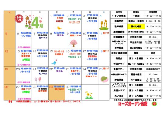 ローズガーデン倉敷日記 TOPページ > ローズガーデン倉敷日記 > 2026年 > 3月 2026.03.21 (Sat)|月間予定表 新着情報 ダウンロードPDFファイル 約367KB ※画像をクリックすると、PDFファイルが開き、詳細をご覧いただけます。 ※PDFファイルの閲覧にはアクロバットリーダー(無料)が必要です。 下のリンクからダウンロードしてください。 ‹ 1 › 2026年3月 月 火 水 木 金 土 日 12 3456789 10111213141516 17181920212223 2425262728 « 2月 ⇒旧ブログはこちら カテゴリー 月間予定表 新着情報 ブログ ローズガーデン倉敷ニュース 最近の投稿 お食事ツアーで「梅の花」へ行って来ました 2830 3月 お食事ツアー かに道楽 2月 お食事ツアーで「レストラン蔦」へ行って来ました 1月 12月 おでかけ食事ツアー 香川県に行ってきました ノルディックウォーク 酒津公園遠征に行きました 月別アーカイブ 2026年3月 2026年2月 2026年1月 2025年12月 2025年11月 2025年10月 2025年9月 2025年8月 2025年7月 2025年6月 2025年5月 2025年4月 2025年3月 2025年2月 2025年1月 2024年12月 2024年11月 2024年10月 2024年9月 2024年8月 2024年7月 2024年6月 2024年5月 2024年4月 2024年3月 2024年2月 2024年1月 2023年12月 2023年11月 2023年10月 2023年9月 2023年8月 2023年7月 2023年6月 2023年5月 2023年4月 2023年3月 2023年2月 2023年1月 2022年12月 2022年11月 2022年10月 2022年9月 2022年8月 2022年7月 2022年6月 2022年5月 2022年4月 2022年3月 2022年2月 2022年1月 2021年12月 2021年11月 2021年10月 2021年9月 2021年8月 2021年7月 2021年6月 2021年5月 2021年4月 2021年3月 2021年2月 2021年1月 2020年12月 2020年11月 2020年10月 2020年9月 2020年8月 2020年7月 2020年6月 2020年5月 2020年4月 2020年3月 2020年2月 2020年1月 2019年12月 2019年11月 2019年10月 2019年9月 2019年8月 2019年6月 2019年5月 2019年4月 2019年3月 2019年2月 2019年1月 2018年12月 2018年11月 2018年10月 2018年9月 2018年8月 2018年7月 2018年6月 2018年5月 2018年4月 2018年3月 2018年2月 2018年1月 2017年12月 2017年11月 2017年10月 2017年9月 2017年8月 2017年7月 2017年6月 2017年5月 2017年4月 2017年3月 2017年2月 2017年1月 2016年12月 2016年11月 2016年4月 2015年4月 2014年4月 2013年4月 2012年4月 2011年4月 2010年4月 2008年4月 2007年4月 2006年9月 2006年3月